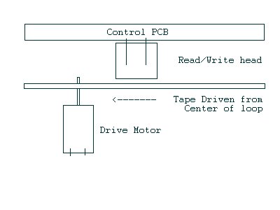 magnetic tape, approx. ???? long. Formed into a continuous loop, and driven past a read/write head