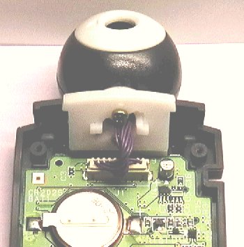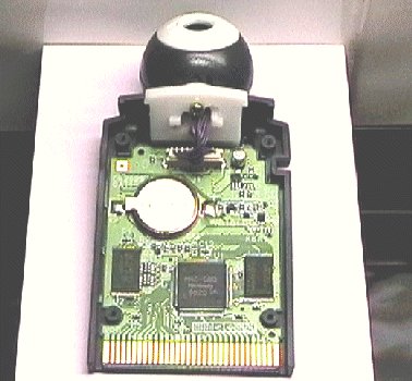 The Gameboy module with the cover removed, and a close up of the special 9 pin connector, where the camera can be unplugged. Everything is in this Eyeball sized module, which can be lifted away and connected to the controller.