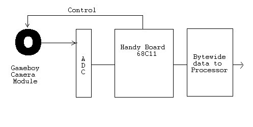 The principal of this design is to utilize the Artificial Retina Chip which is designed into the old gameboy camera module. To do so, the camera module is stripped down and the CCD/PCB assembly is removed. The control of this module will have to be undertaken by a dedicated microcontroller, as the output will have to be processed by an Analog to digital converter, then made available to the main processor board as a frame of data.