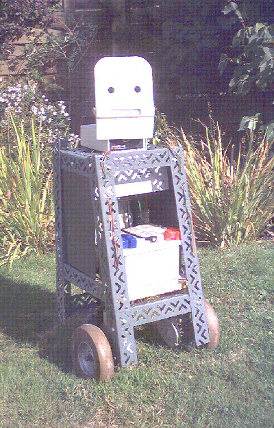 The outside development time this year, has now mostly expired, and it is time to put the hardware away and work on the software over the winter. The progress this year is the upgrading of the main Cpu to a 486/66 and the introduction of the animatronics mask. Which tested last winters software to the limit, and beyond in some cases. The introduction of current limiting and power control to the drive motors, this uses pulse width control from the servo drives included in series with the motor switching relays.
